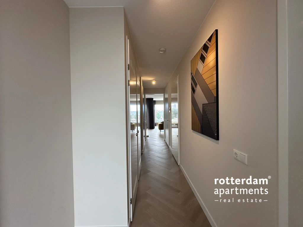 Dit moderne 3-kamer appartement aan de Brouwhuisstraat is gelegen op de 5e etage van het moderne nieuwbouwcomplex. Het appartement is gelegen op een unieke locatie aan de maas en beschikt over een ruime woonkamer, luxe open keuken, een royaal balkon met uitzicht op de Willemsbrug, De Hef èn de Erasmusbrug.
