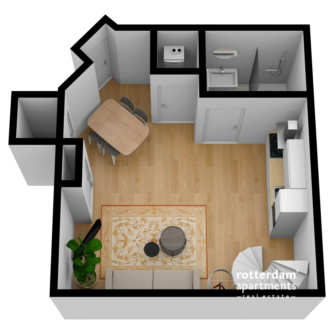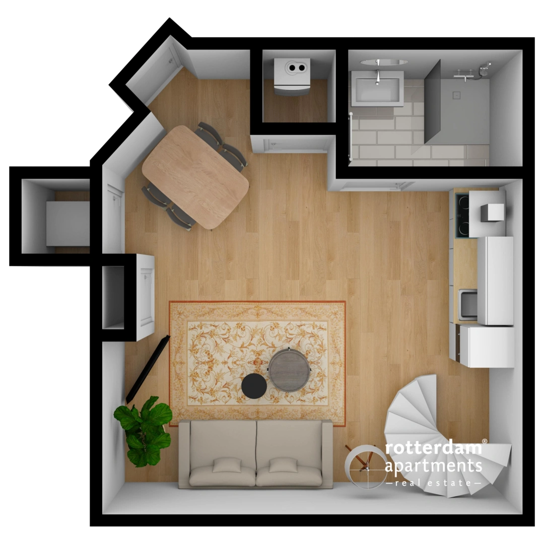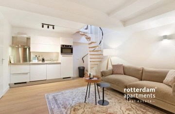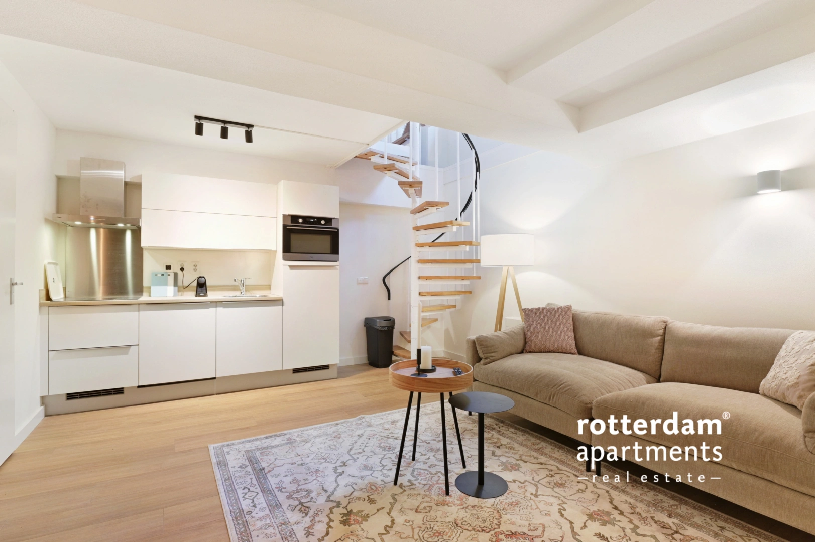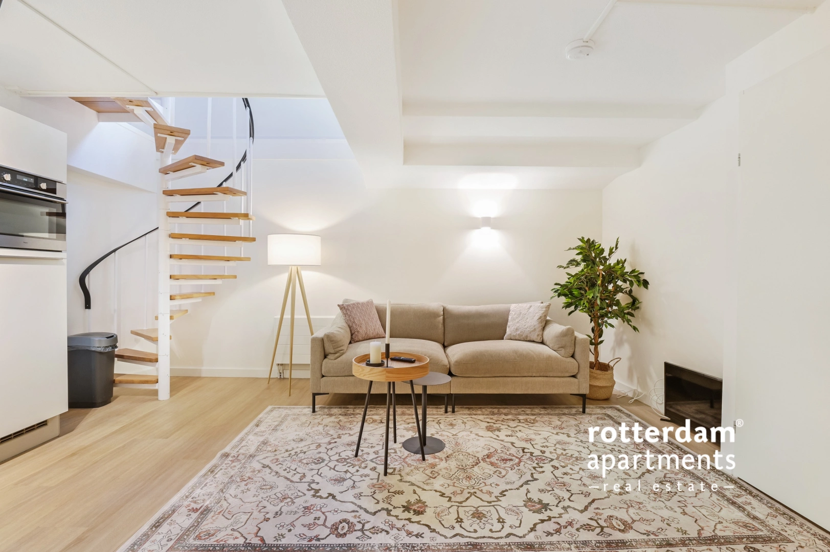 Indeling: Dit appartement is verdeeld over 3 woonlagen, het soutterain, begane grond en een entresol. Entree op de begane grond, hier bevind zich een toilet en garderobe. De wenteltrap biedt toegang tot het souterrain en entresol. In het souterrain bevind zich het woon/eetgedeelte met volledig nieuwe keuken welke van alle gemakken is voorzien. Ook bevindt hier de badkamer en een extra berging met was/droogcombinatie. Via de wenteltrap toegang tot de entresol, waar de slaapkamer te vinden is.