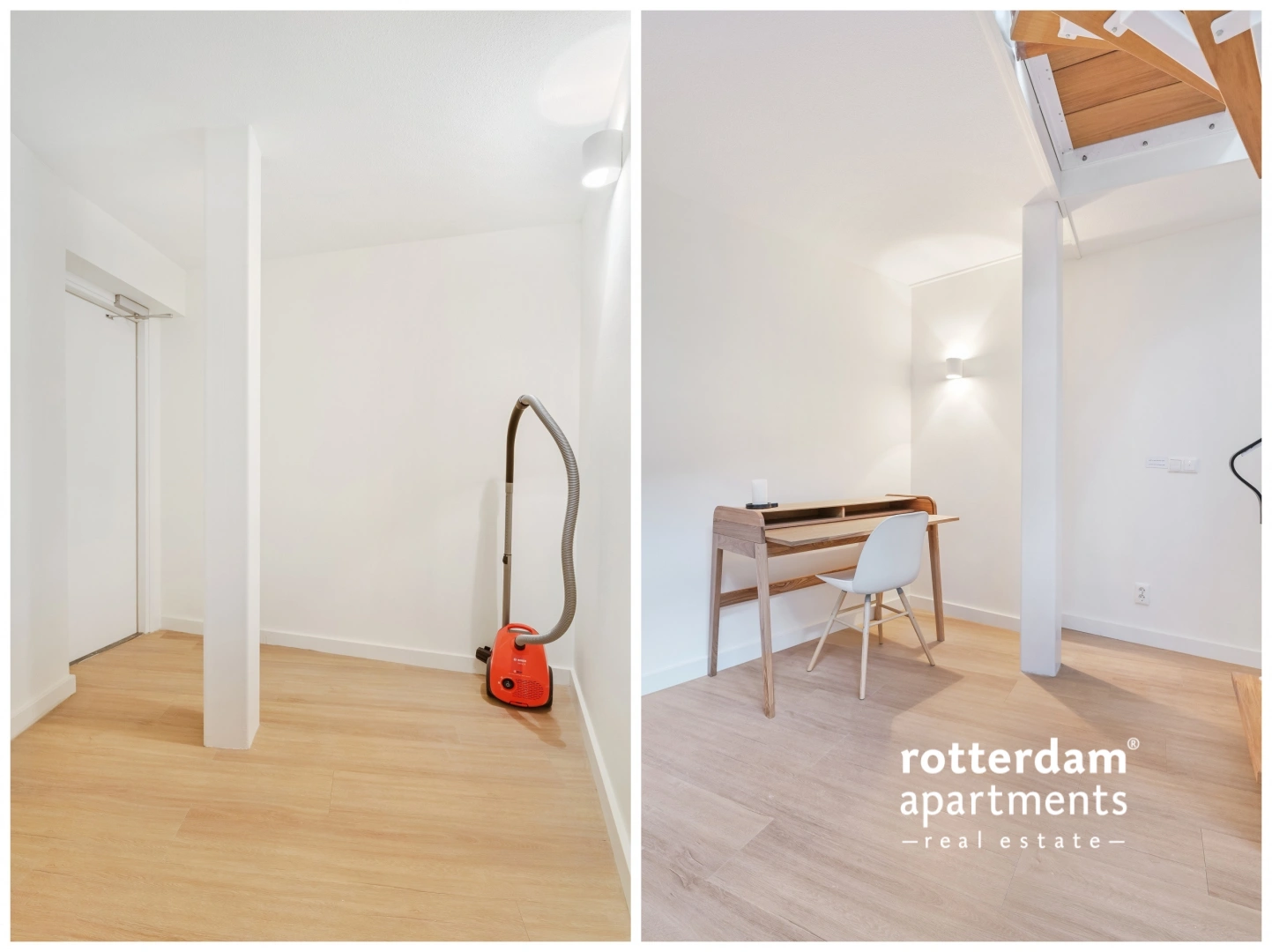 grond en een entresol. Entree op de begane grond, hier bevind zich de badkamer, keuken / eetkamer. Trap biedt toegang tot het souterrain en entresol. In de souterrain bevinden zich 2 slaapkamers (de 2e slaapkamer wordt momenteel gerealiseerd). Via de trap toegang tot de entresol, waar de