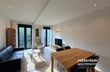 Gemeubileerd 2-kamer woning op de 3e etage in het centrum van Rotterdam. Dit nieuwbouw appartement is hoogwaardig afgewerkt met vloerverwarming, automatische zonwering, Siemens Studio Line apparatuur en vloerverwarming. Om de hoek van alle horeca en winkels en openbaar vervoer. Centraal station op 10 minuten loopafstand.