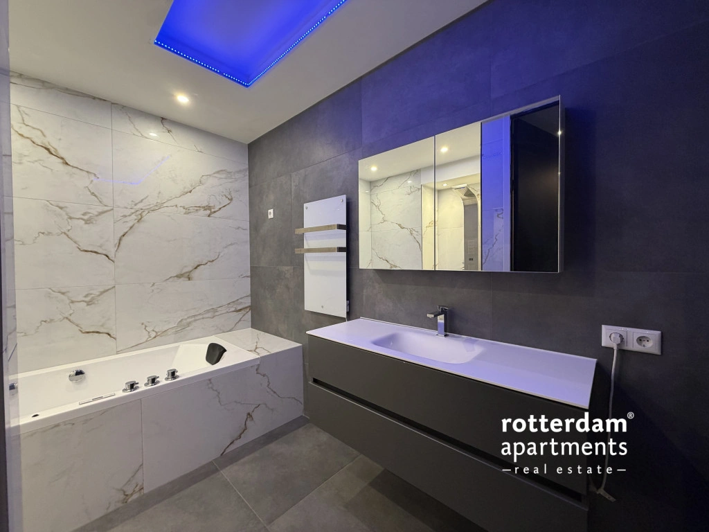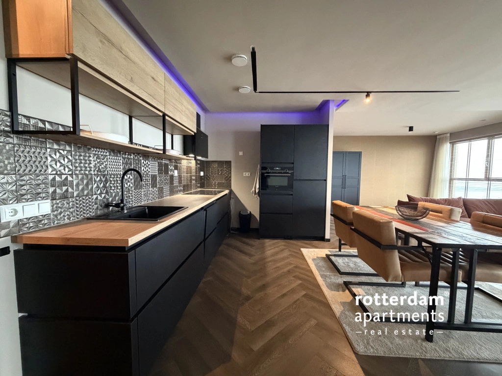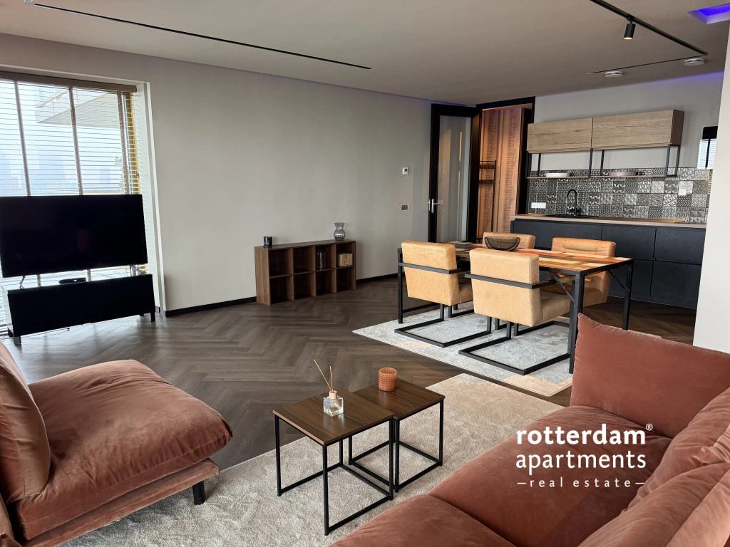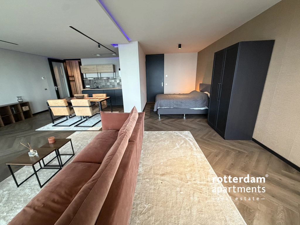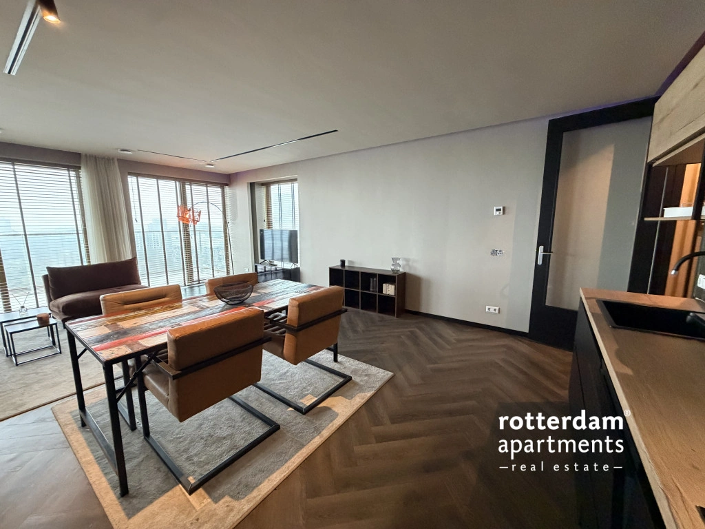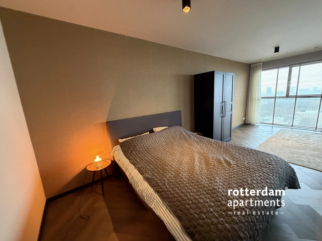 Luxe gemeubileerd 3-kamer appartement aan de Gedempte Zalmhaven te Rotterdam. Dit net afgewerkte hoek-appartement is gelegen op de 17e etage met skyline uitzicht over 'de Maas' en 'Het park'. Dit prestigieus appartementencomplex aan de Maas ligt in het populaire Scheepvaartkwartier te midden van groene parken, historie en kunst, cultuur, het stadscentrum en alles wat Rotterdam te bieden heeft.