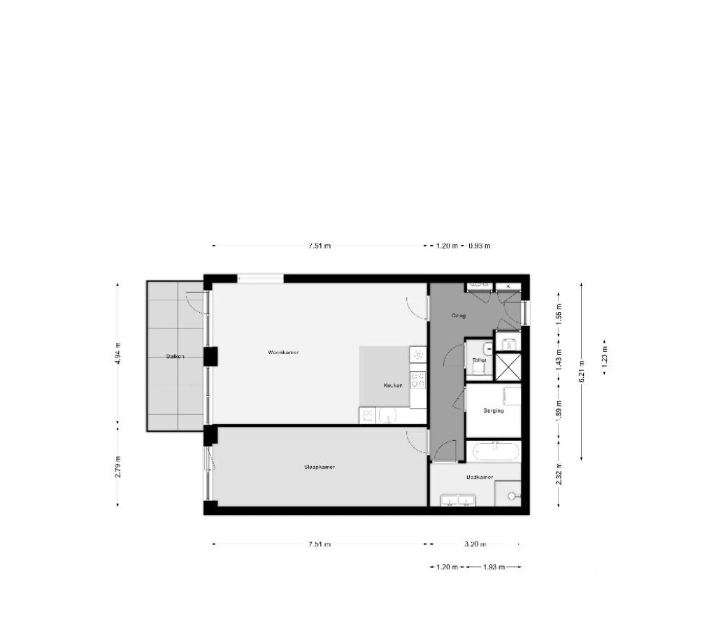 U komt het appartement binnen in de L vormige hal met toegang tot alle vertrekken.