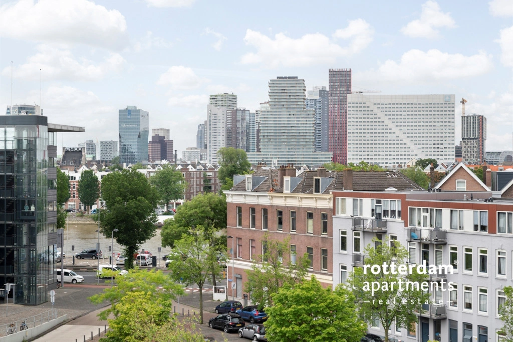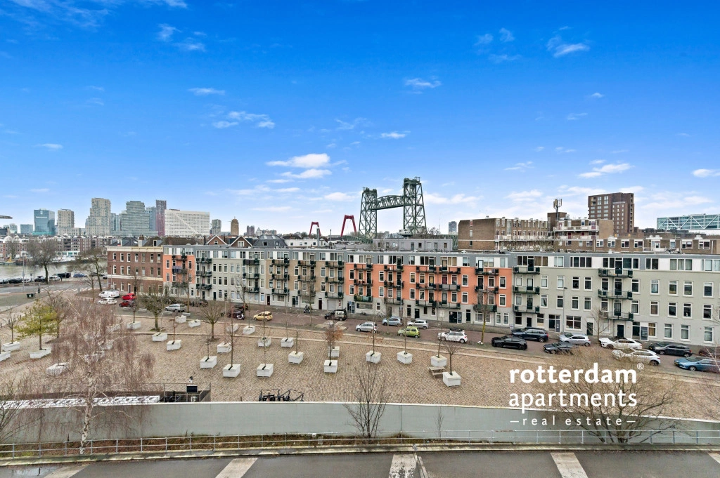 skyline van Rotterdam en de Hef.