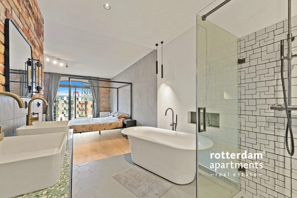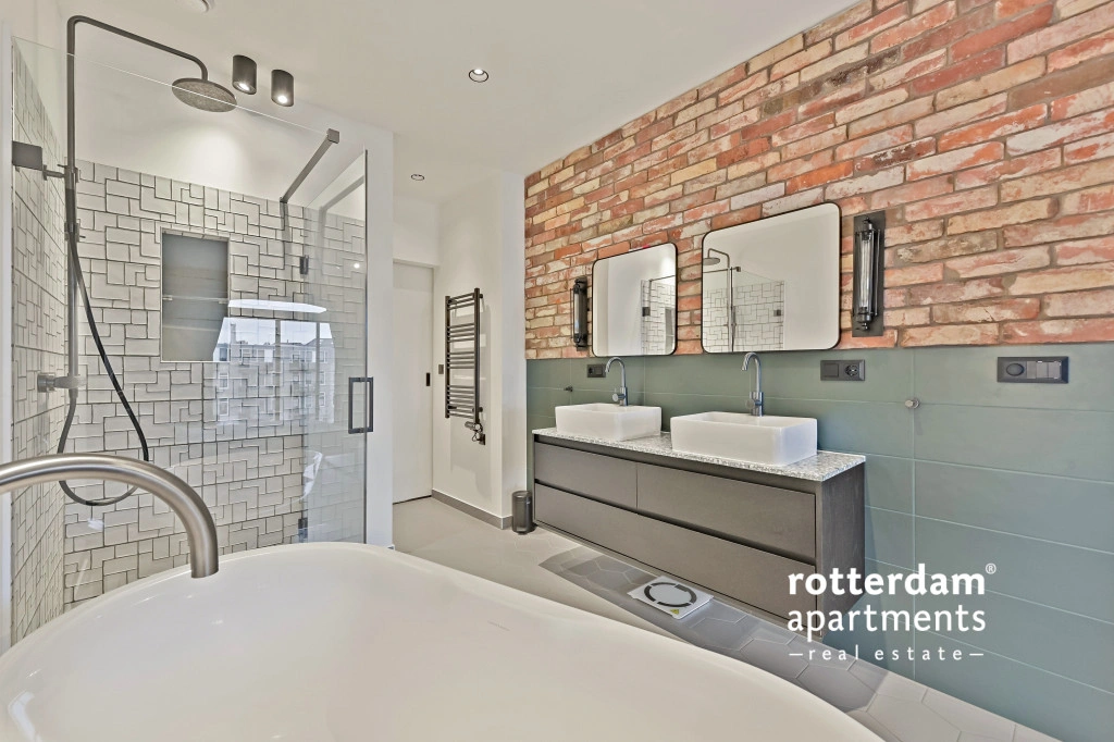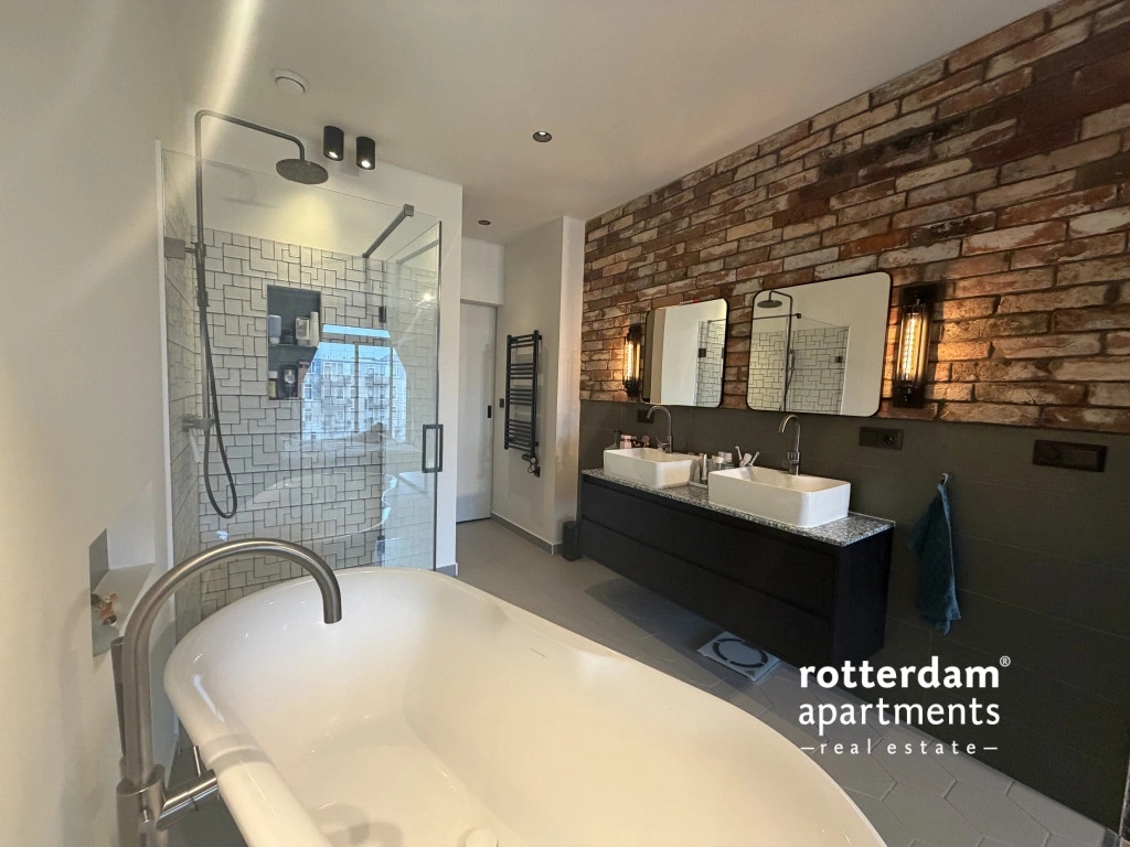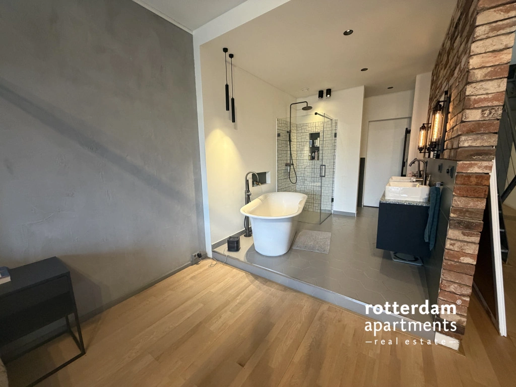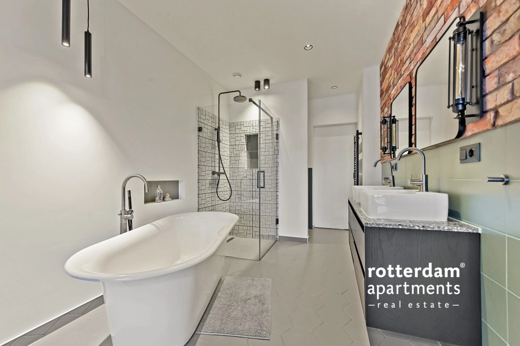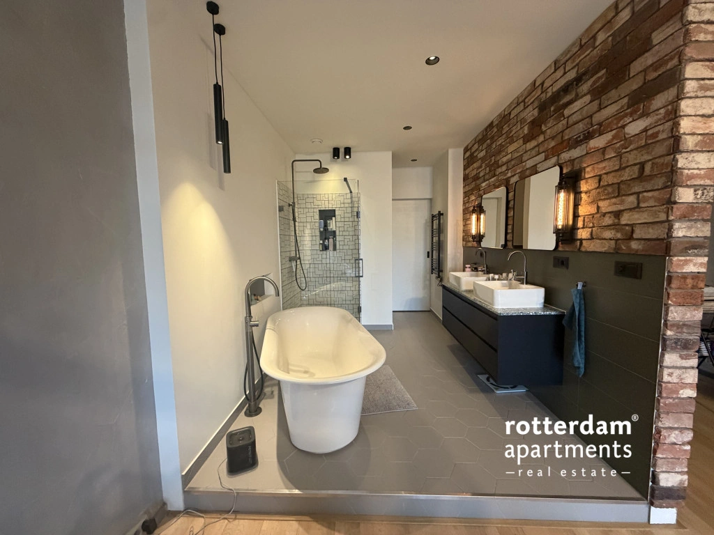 badkamer beschikt over een vrijstaand ligbad, ruime inloopdouche, 2 losse