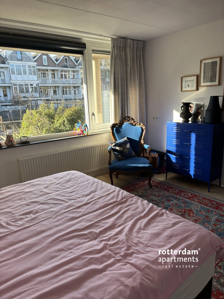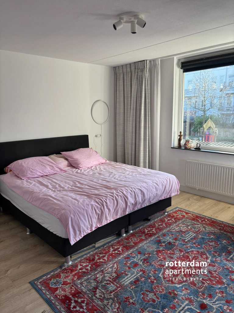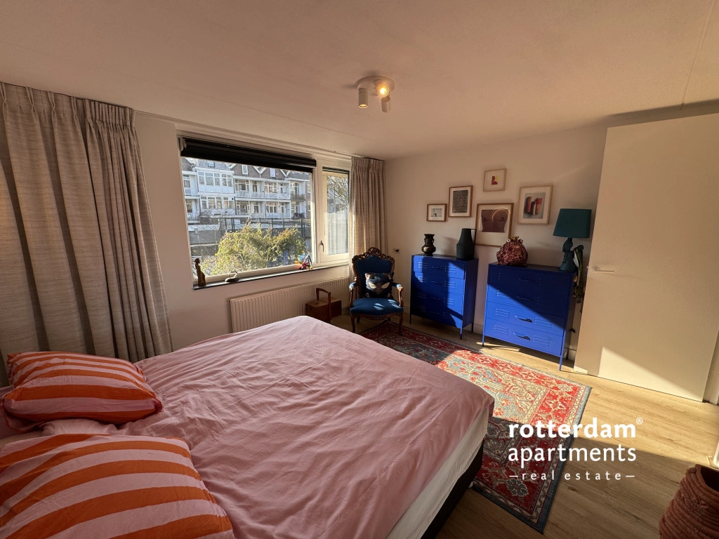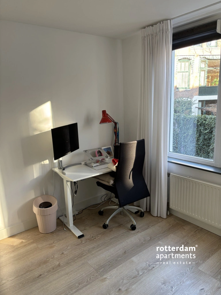 Aan de achterzijde bevindt zich de ruime hoofdslaapkamer, ingericht met een tweepersoonsbed en kledingkast. Aan de voorzijde ligt de tweede slaapkamer, momenteel ingericht als werkkamer.