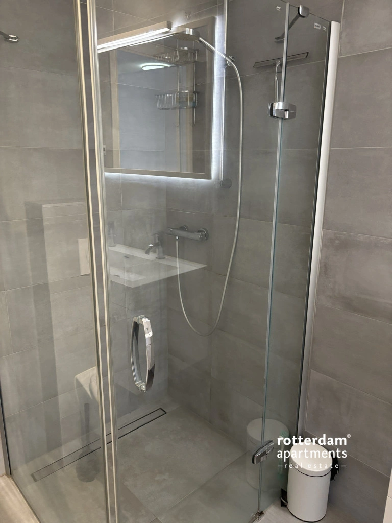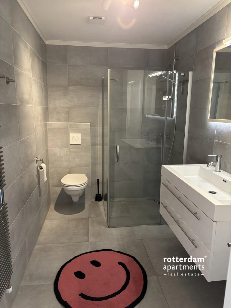 De badkamer is ruim opgezet en voorzien van een dubbele wastafel, inloopdouche en toilet. Tevens is er een smalle berging met aansluiting voor de wasmachine.Bijzonderheden: