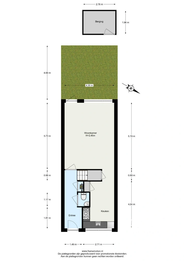 Binnenkomst via de eigen entree op begane grond. U komt binnen in de hal met toegang tot zich een separaat toilet, de trap naar de eerste verdieping en de woonkamer met open keuken.