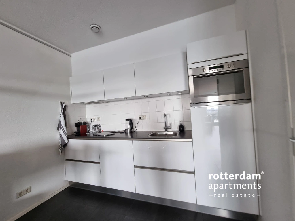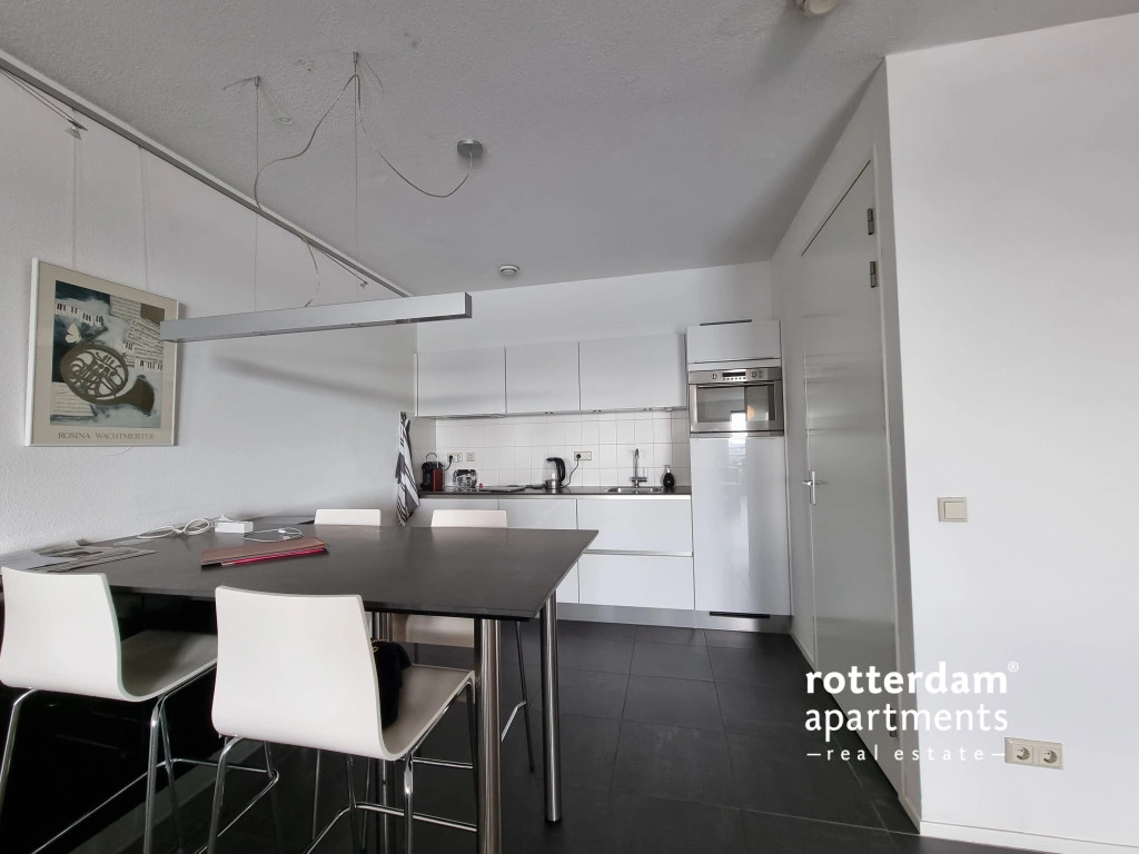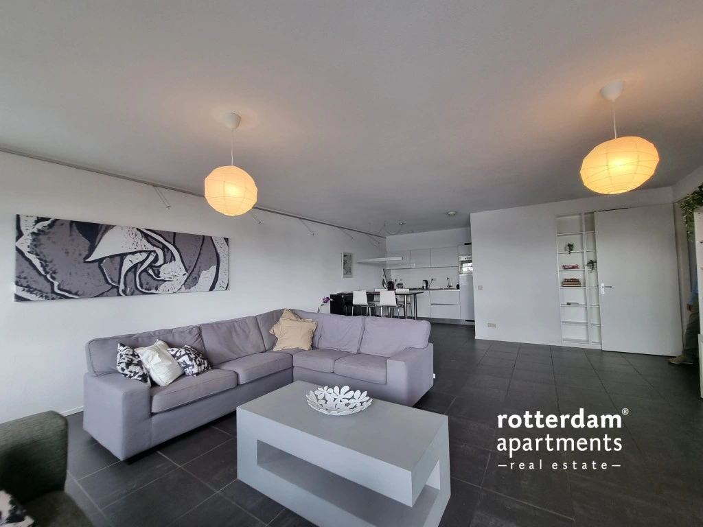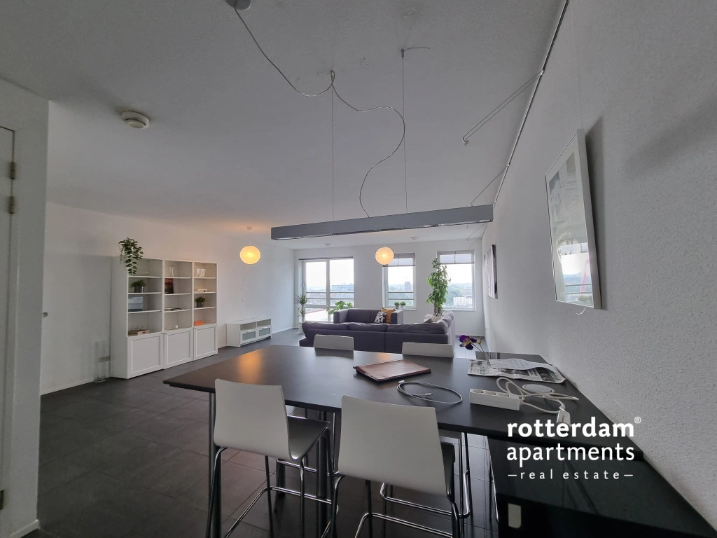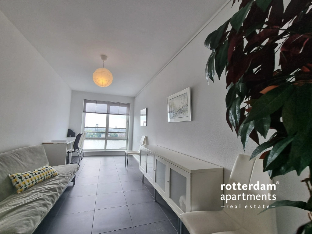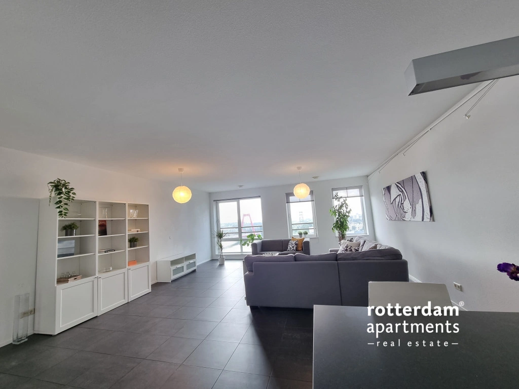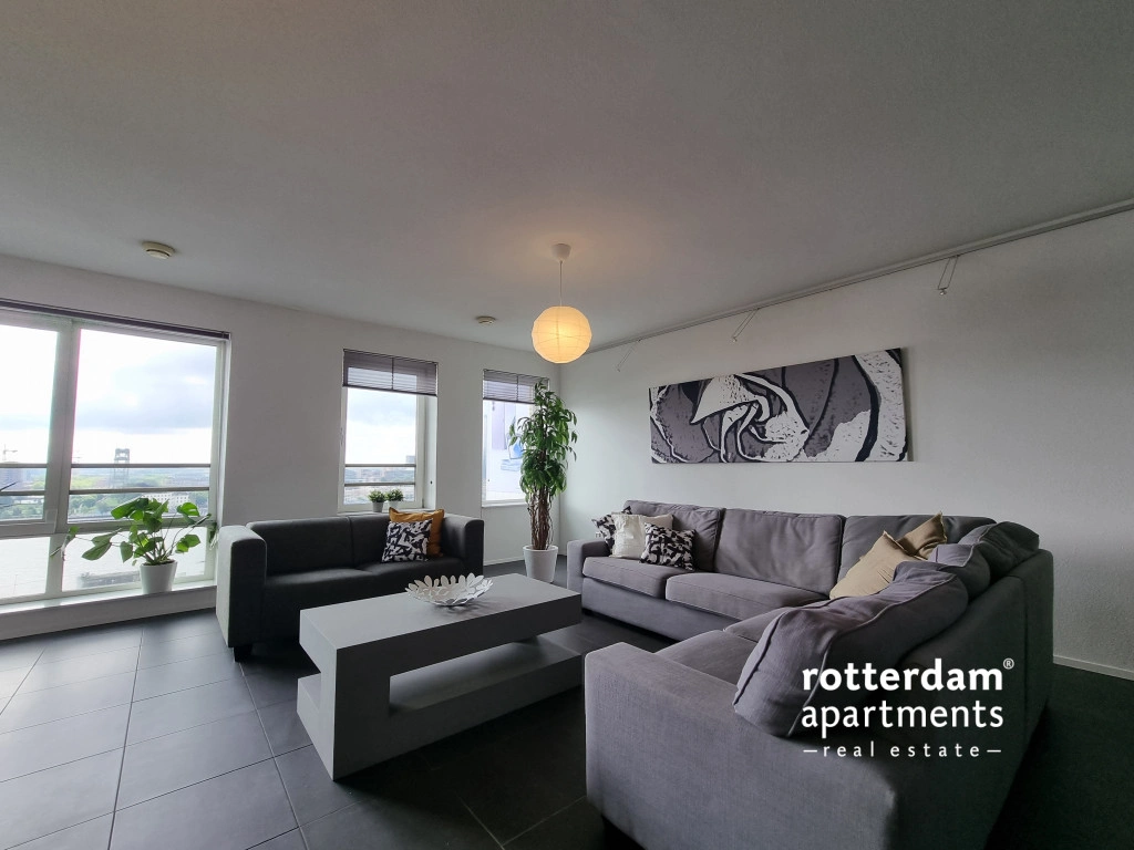 met adembenemend uitzicht over de rivier de Maas en de stad Rotterdam. De