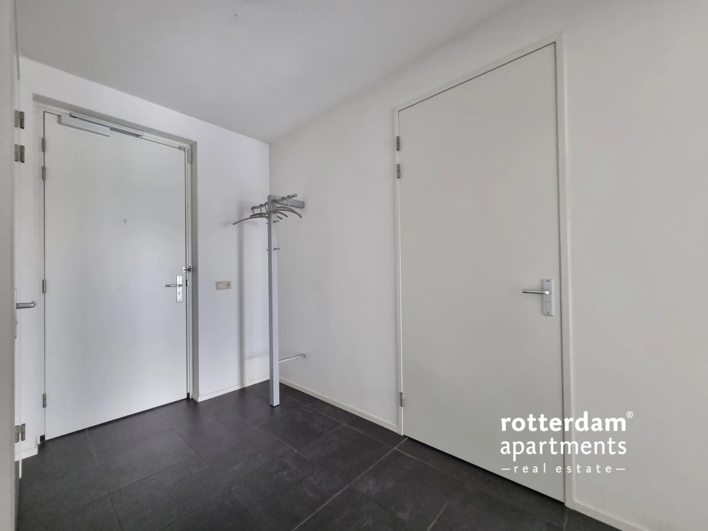 Door de voordeur kom je in de hal met kapstok en toegang tot alle kamers van het appartement.