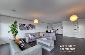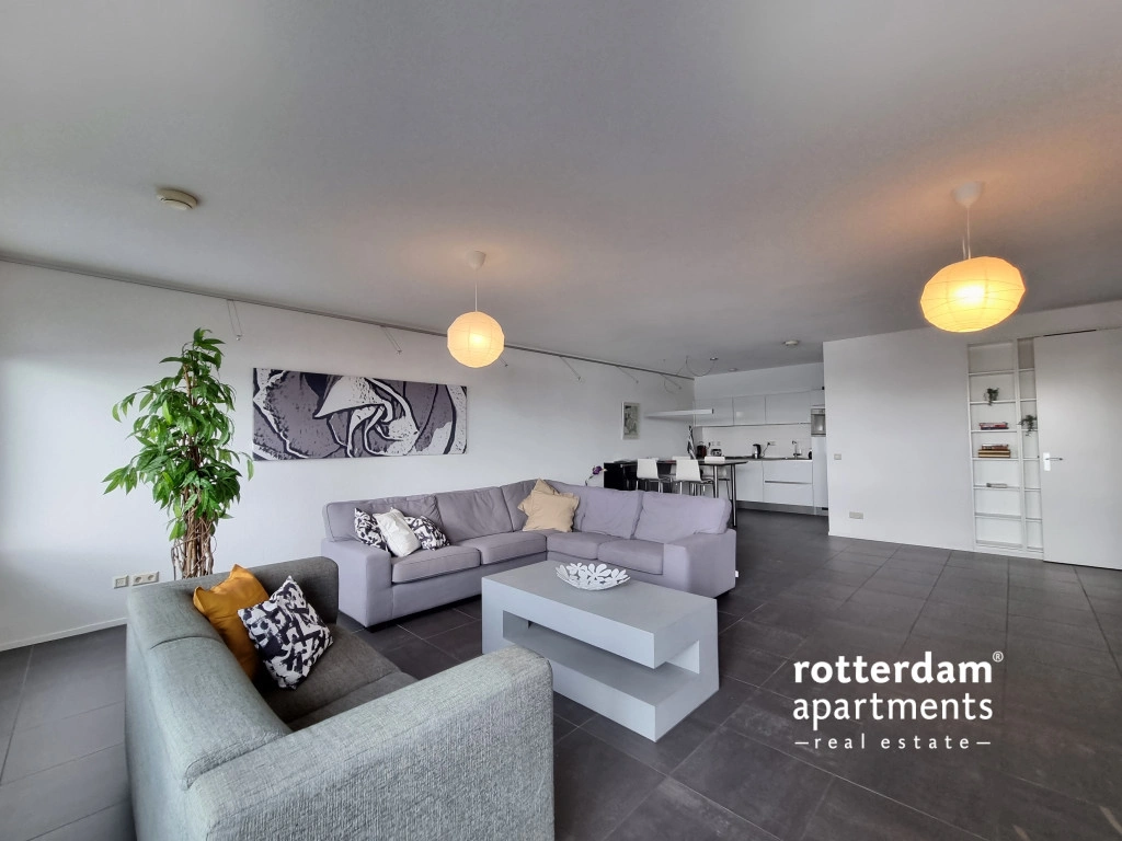 Het appartement is één van de drie appartementen op de veertiende verdieping. Het appartement heeft onbelemmerd uitzicht op de rivier de Maas en is geheel voorzien van vloerverwarming en -koeling die individueel per kamer ingesteld kan worden.