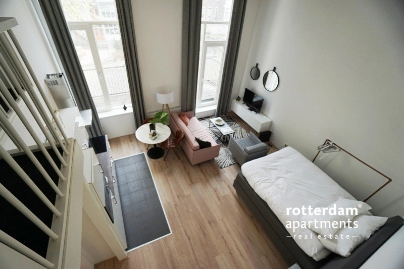 Volledig gemeubileerde en gerenoveerde Hotel Studio's variƫrend van 40m2 tot 50m2 met uitzicht over de Eendrachtsweg. Gelegen in hartje centrum van Rotterdam. In en rondom de bruisende straat vindt u kunst, cultuur, theater, film, de kroeg en lekker eten. Alles op nog geen stap verwijderd vanaf de voordeur. Zowel metrostation Leuvenhaven en treinstation Beurs zijn op loopafstand.