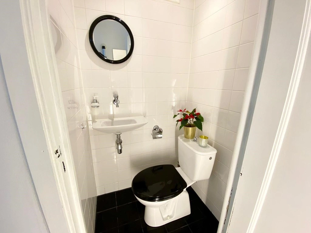 Aan de achterzijde bevindt zich de slaapkamer met badkamer en-suite. De slaapkamer is licht en rustig gelegen. De badkamer is voorzien van een douche, wastafel met meubel en handdoekenradiator. Er is een apart toilet met fonteintje aanwezig.